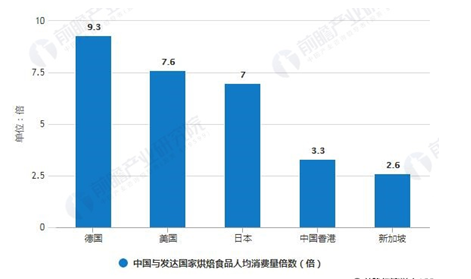 2018年中國與發(fā)達國家烘焙食品人均消費量對比情況